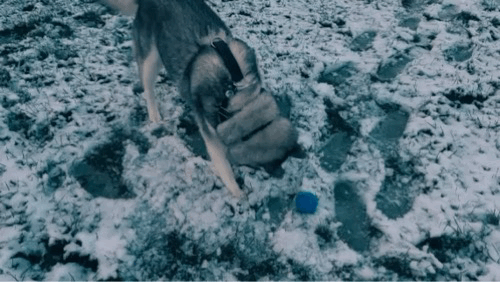 with her ball in the snow.