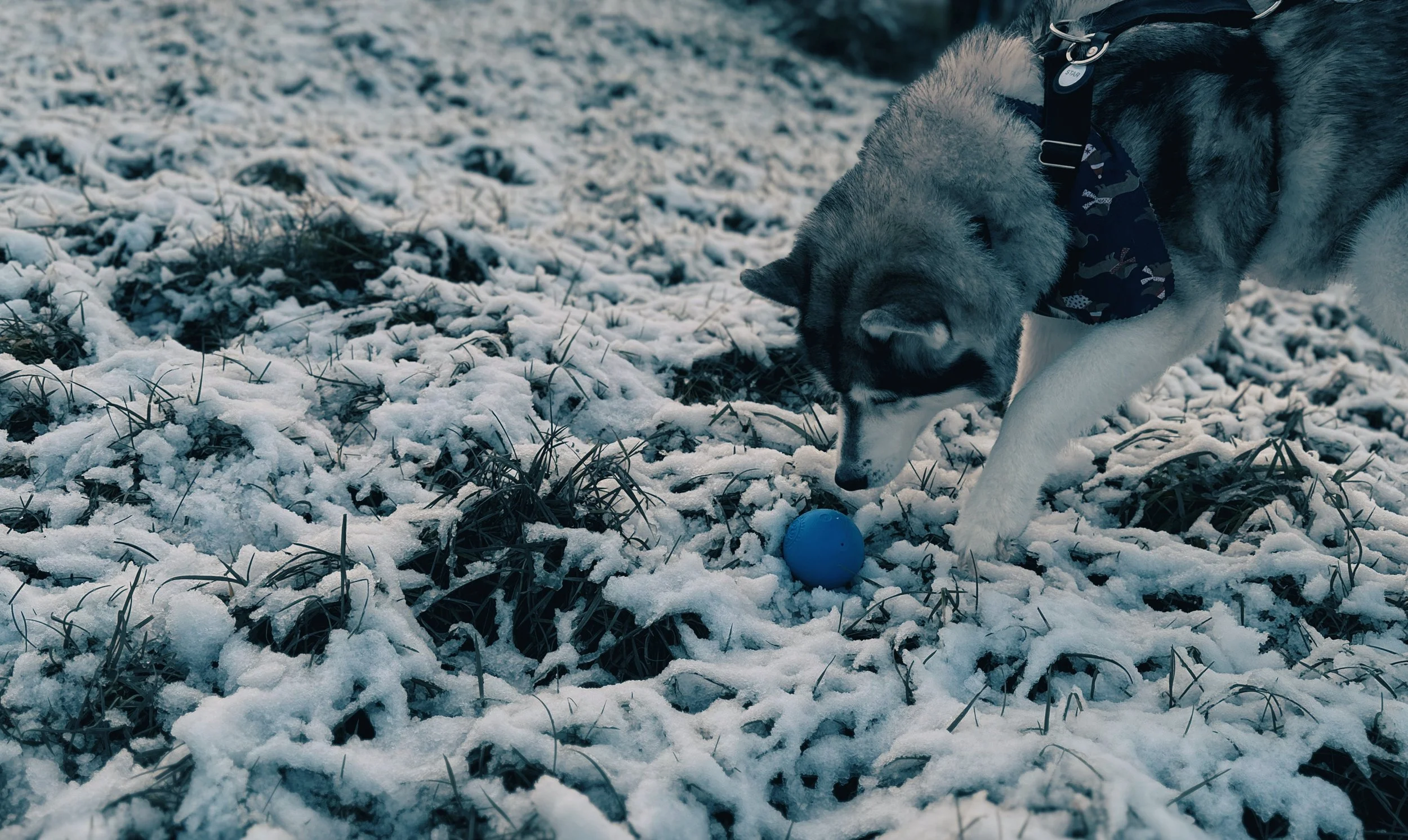When the blizzard ends and the snow sticks, there’s only one thing for a husky to do. Time to go and play!
